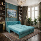 Надёжность тоже на высоте: прочный металлокаркас обеспечивает стабильность и долговечность механизма раскладывания. Для практичности — съёмные чехлы, а внешний вид подчёркивает каретная стяжка ручной работы, добавляющая модели статус и характер.
